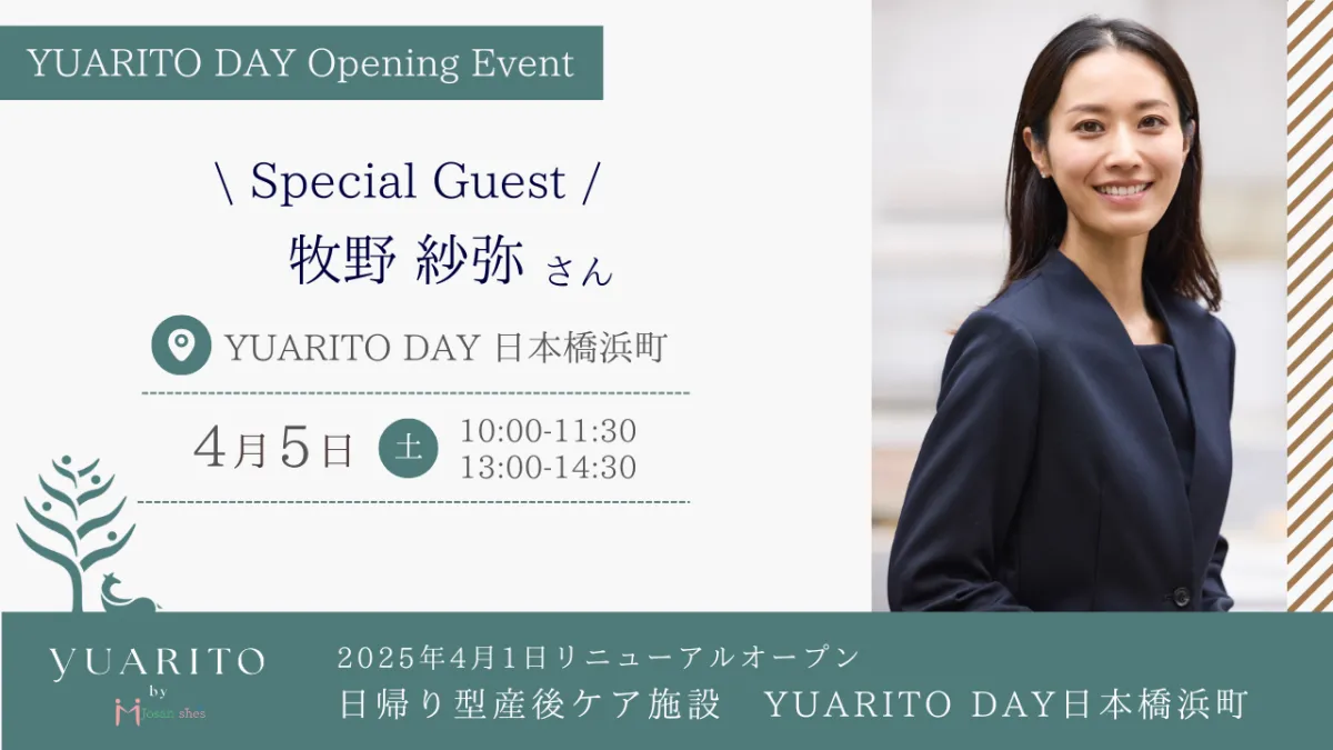 日本橋浜町に新たにオープンする日帰り型産後ケア施設『YUARITO DAY』が、2025年4月5日(土)に特別なオープニングイベントを開催します。この施設は、産後のママと赤ちゃんが快適に過ごせるように設計されており、地域のママたちの育児をサポートする重要な役割を担っています。また、今回のイベントでは著名なモデルであり実業家の牧野紗弥さんがスペシャルゲストとして登場し、彼女の育児に対する思いや産後ケアの重要性についてのトークを披露します。