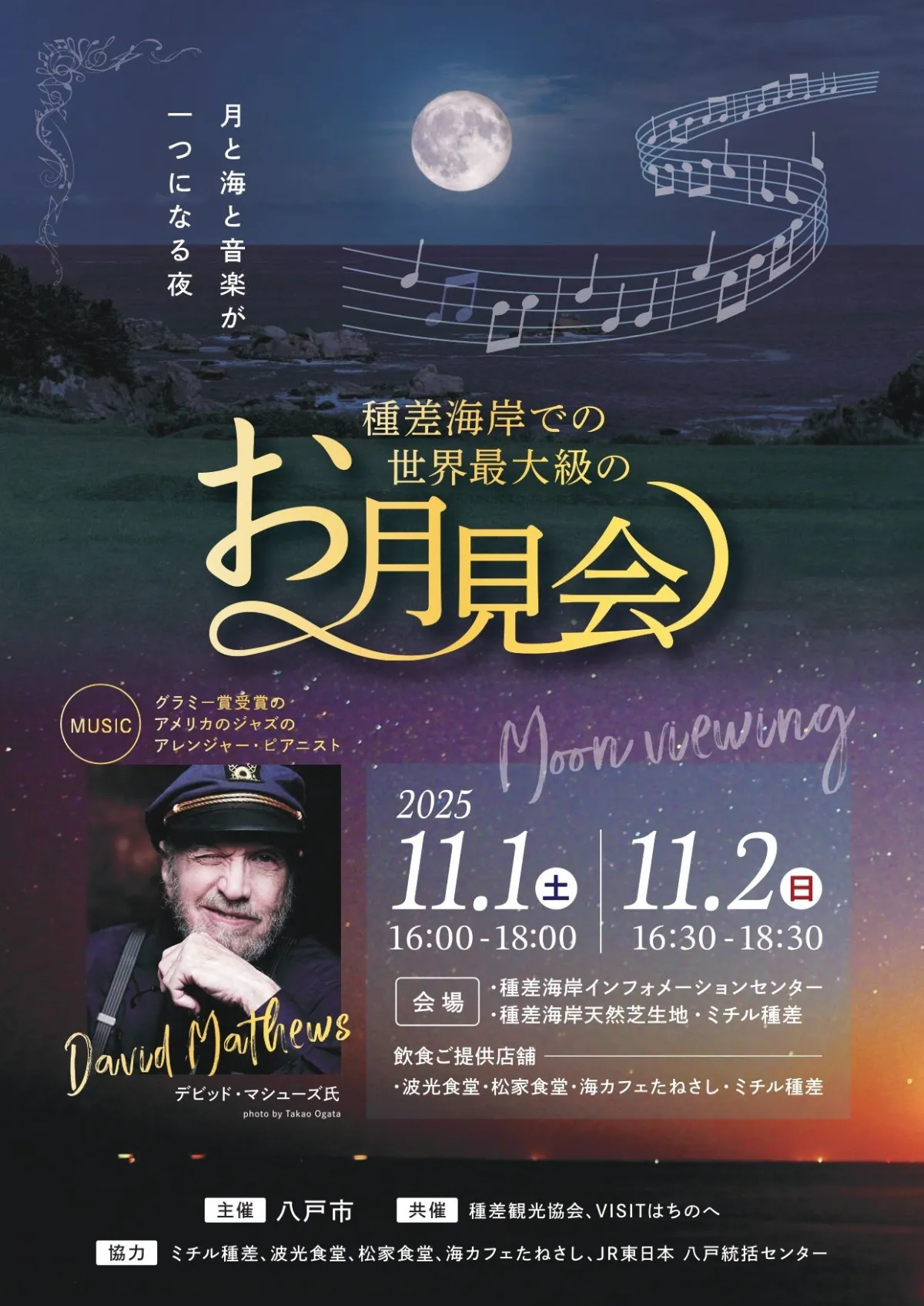 このお月見会に華を添えるのは、グラミー賞受賞ジャズミュージシャン、デビッド・マシューズ氏による特別なジャズ演奏です。彼の音楽は、月の光とともに幻想的な空間を演出します。観覧は無料で、申し込みも不要ですので、気軽にお楽しみください。