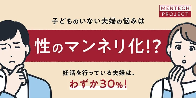 調査では、子供を持たない夫婦の性に関する悩みが、「性的興奮が持続しない」、「性的満足度が低い」、「性行為に対する欲求が減少している」といった項目で高い割合を示しました。特に、性行為に対するマンネリが背景にあると推測できます。