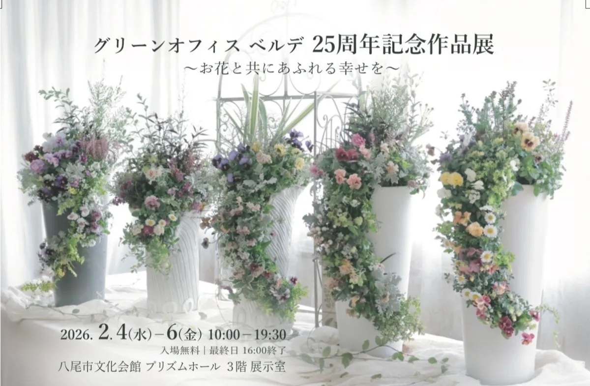 2026年2月4日(水)から6日(金)まで、大阪府八尾市のプリズムホールで、グリーンオフィスベルデの創立25周年を祝う特別なイベントが開催されます。都内で累計4万人が参加した植物教室の成果を一堂に集めた「作品展」と、植物を使った実践的な「ワークショップ」が行われるこの機会を逃す手はありません。