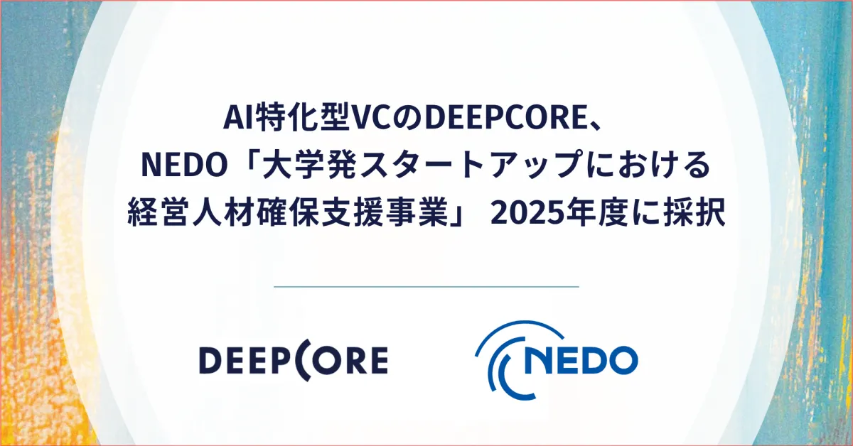 株式会社ディープコア(DEEPCORE)は、国立研究開発法人新エネルギー・産業技術総合開発機構(NEDO)が実施する「大学発スタートアップにおける経営人材確保支援事業」に2025年度の実施予定先として採択されました。本事業の目的は、大学や研究機関の持つ革新的な技術を社会に実装するための大きな壁を取り去り、ディープテックスタートアップの創出を加速させることです。