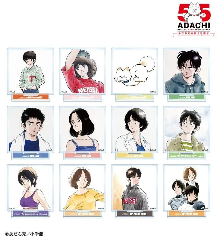 あだち充作品の美しいイラストを使用したアクリルスタンド。お部屋やデスクを飾るのにぴったりのアイテムです。・単品価格:¥880(税込)、BOX価格:¥10,560(税込)・サイズ:本体(約)63×60mm、台座(約)50×37mm、厚み:3mm・全12種。