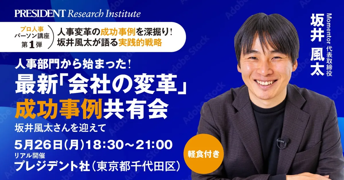 株式会社プレジデント社が主催する『プロ人事パーソン講座』の第一弾が、2025年5月26日に開催されます。これは『人事部門から始まった!最新『会社の変革』成功事例共有会』というテーマで、人事に携わる方々やこれから目指す方々に向けた非常に有意義なプログラムです。