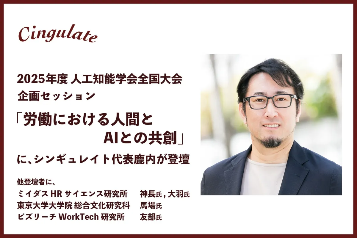 株式会社シンギュレイトの代表取締役、鹿内学が2025年度の人工知能学会全国大会に登壇します。開催日は2025年5月27日から30日まで、大阪国際会議場にて行われます。