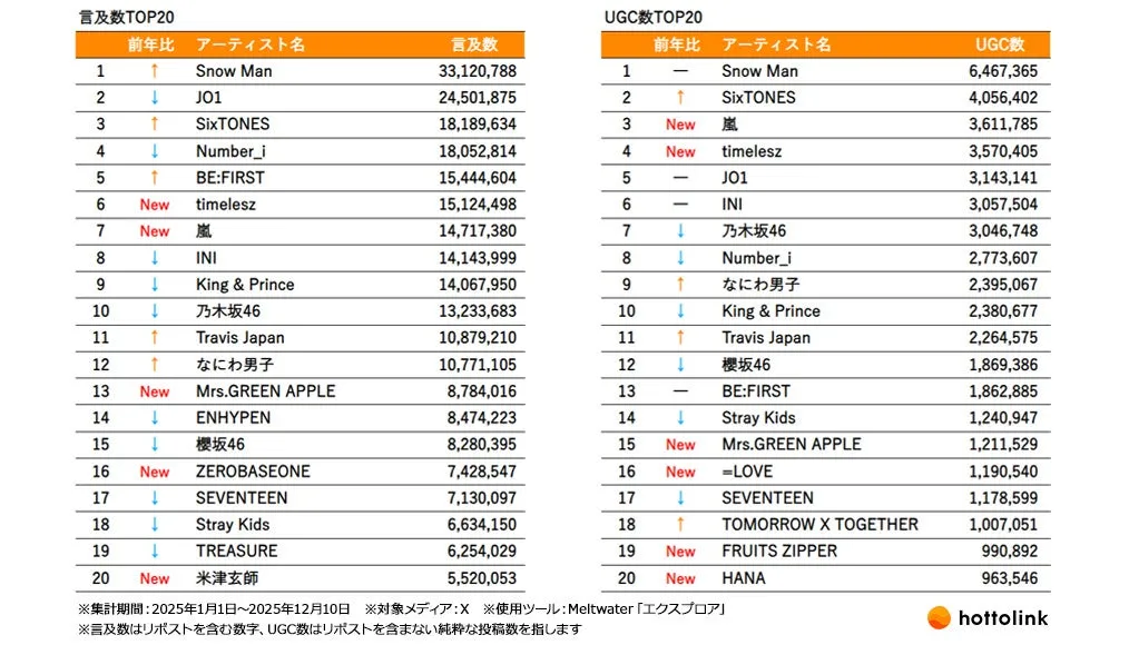 株式会社ホットリンクは、2025年にSNSプラットフォーム「X」において注目を集めたアーティストについての詳細な調査結果を発表しました。この調査は、国内の月間アクティブユーザー数が6600万人を超える「X」において、アーティスト関連の投稿を分析し、特に話題性と人気を持つ音楽グループを特定することを目的として行われました。