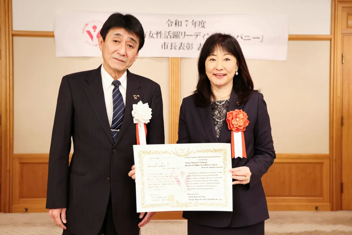 表彰式では西山忠邦副市長が、受賞企業を称賛し、「意欲のある女性が活躍し続けられる組織づくり」と「ワーク・ライフ・バランス支援」の重要性を強調しました。これに対し堀越大阪本社代表は「地道な取り組みが実を結び、この栄誉をいただけたことを嬉しく思います。今後もメディア企業としての取り組みを前進させる所存です。」と意気込みを語りました。
