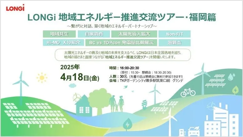 LONGi Solar Technology株式会社が、革新的な太陽光パネル「Hi-MO X10」の市場投入に合わせて、全国規模での「LONGi 地域エネルギー推進交流ツアー」を開始します。このツアーは、再生可能エネルギーの普及と地域のパートナーとの連携強化を目的としており、2025年4月18日(金)には福岡で初回が開催されます。