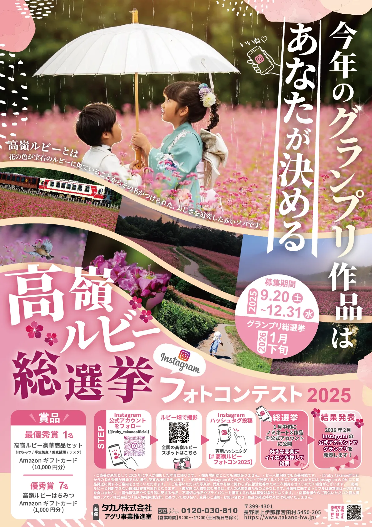 タカノ株式会社が主催する「高嶺ルビーフォトコンテスト2025」が、2025年9月20日(土)から12月31日(水)の間に開催されます。このコンテストは、赤い花が特徴のソバ、「高嶺ルビー」の魅力を多くの人に知るきっかけを提供することを目的としています。