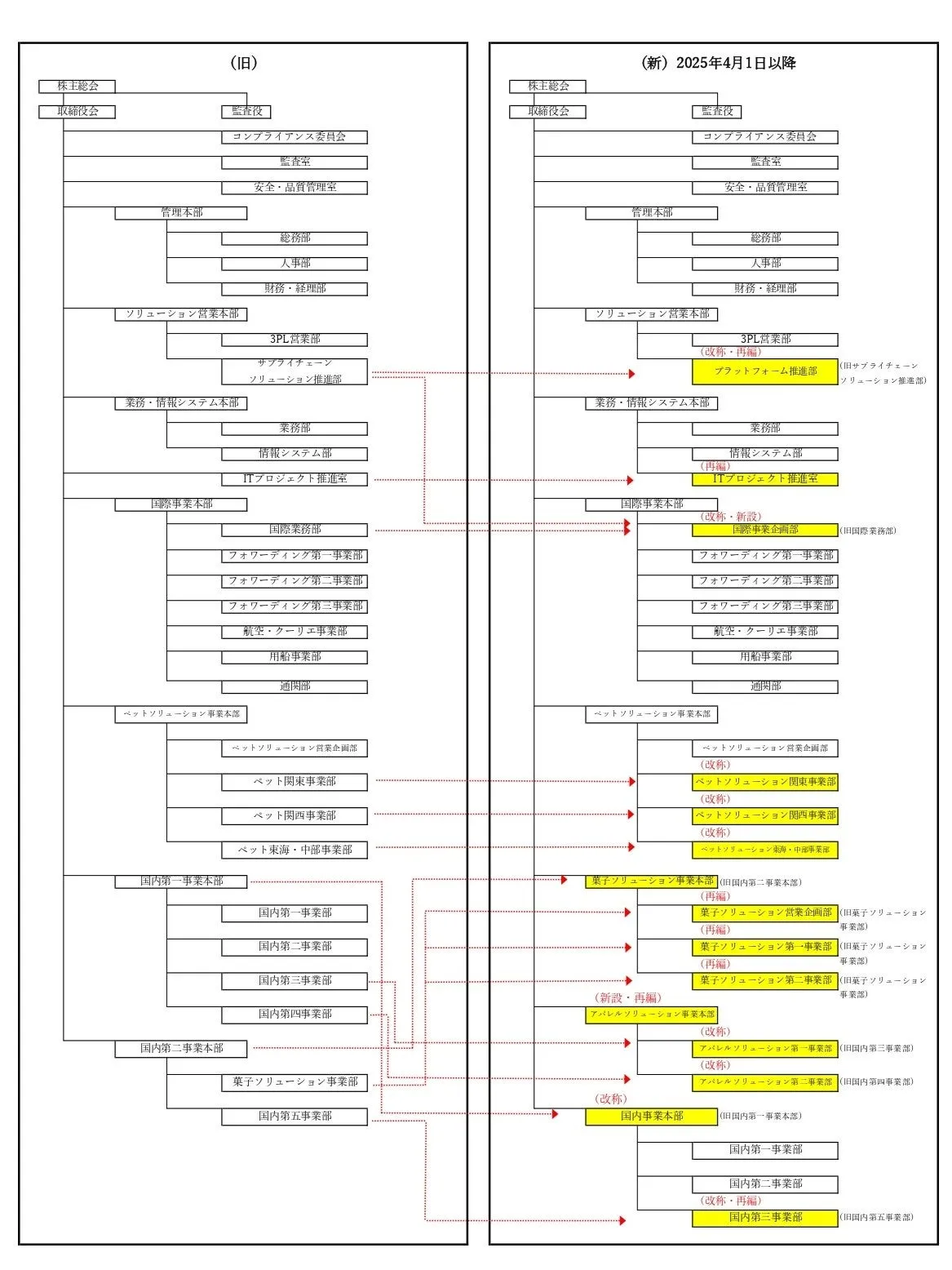 さらに、物流事業セクターには力を入れており、企画・開発・営業機能の強化を図るために、傘下の部署を再編成します。具体的には既存の「サプライチェーンソリューション推進部」が「プラットフォーム推進部」に改称され、新たなビジネスモデルを生み出すための企画や営業活動をより一層推進していく計画です。特に国内および国際物流のプラットフォーム機能を強化することに重点を置いています。
