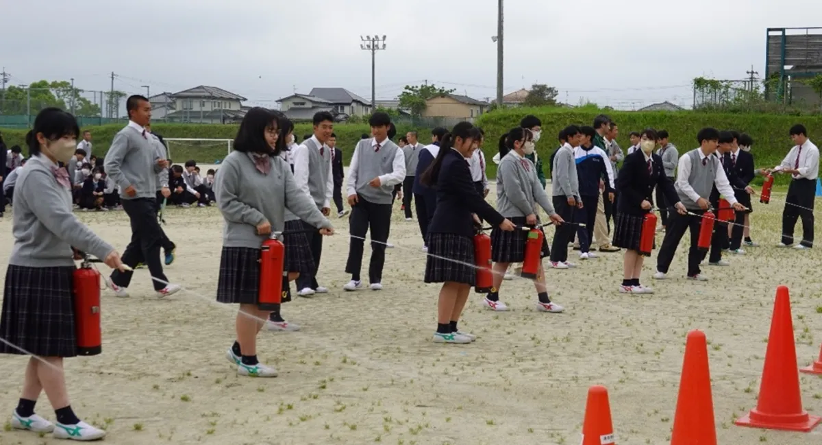 訓練の内容には、正しい避難の仕方、迅速かつ的確な人員点呼、報告、待機の方法などが含まれます。これにより、生徒たちは災害時の必要な知識と対応力を身につけることができます。さらに、避難訓練が終了した後には、飯塚消防署による消火器の使用方法の説明があり、実際に水消火器を使用した消防訓練も行われます。