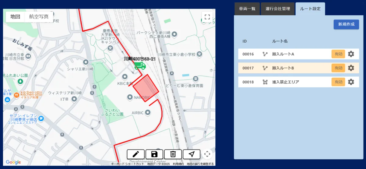 管理者は現場へ向かう車両の状況を地図上で把握することができ、工程管理にも役立てることができます。更に、パスワード再発行も可能でセキュリティも万全です。