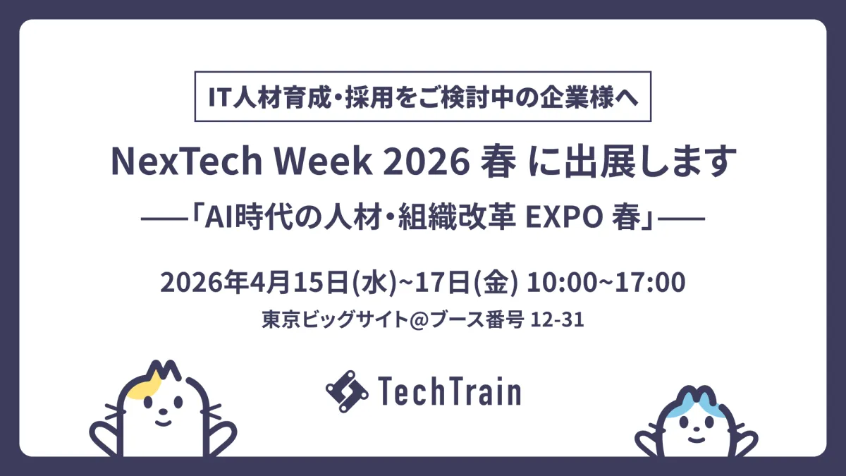 2026年4月、東京ビッグサイトで開催される「NexTech Week 2026 春」に出展するTechTrain(株式会社TechBowl)。同社が掲げる理念は「テクノロジーを支える、全ての人のターミナルに。」です。これは、IT業界における人材育成の重要性を掲げたものであり、特に「現場で使える」IT人材を育てるための具体的な方法論を提供することに注力しています。