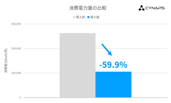 従来の業務用空調はON/OFFの切り替えのみですが、cynapsのIoTインバーター制御技術は、リアルタイムで空気環境に応じた換気量の調整が実現可能です。このことにより、無駄なエネルギー消費を最大限に減らし、快適な空間を維持することができます。