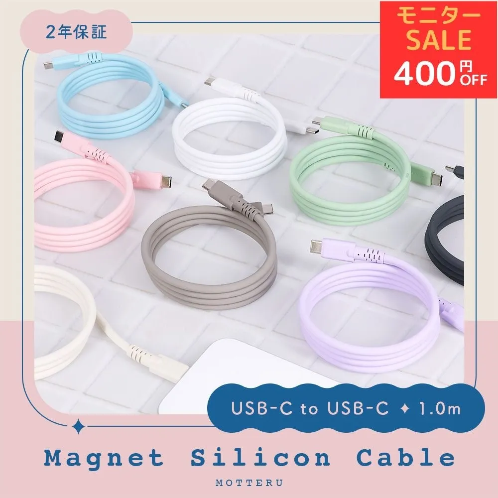 軽量で断線しにくいシリコン素材を使用し、マグネットでまとめられるケーブル。特価は1,280円(400円OFF)。