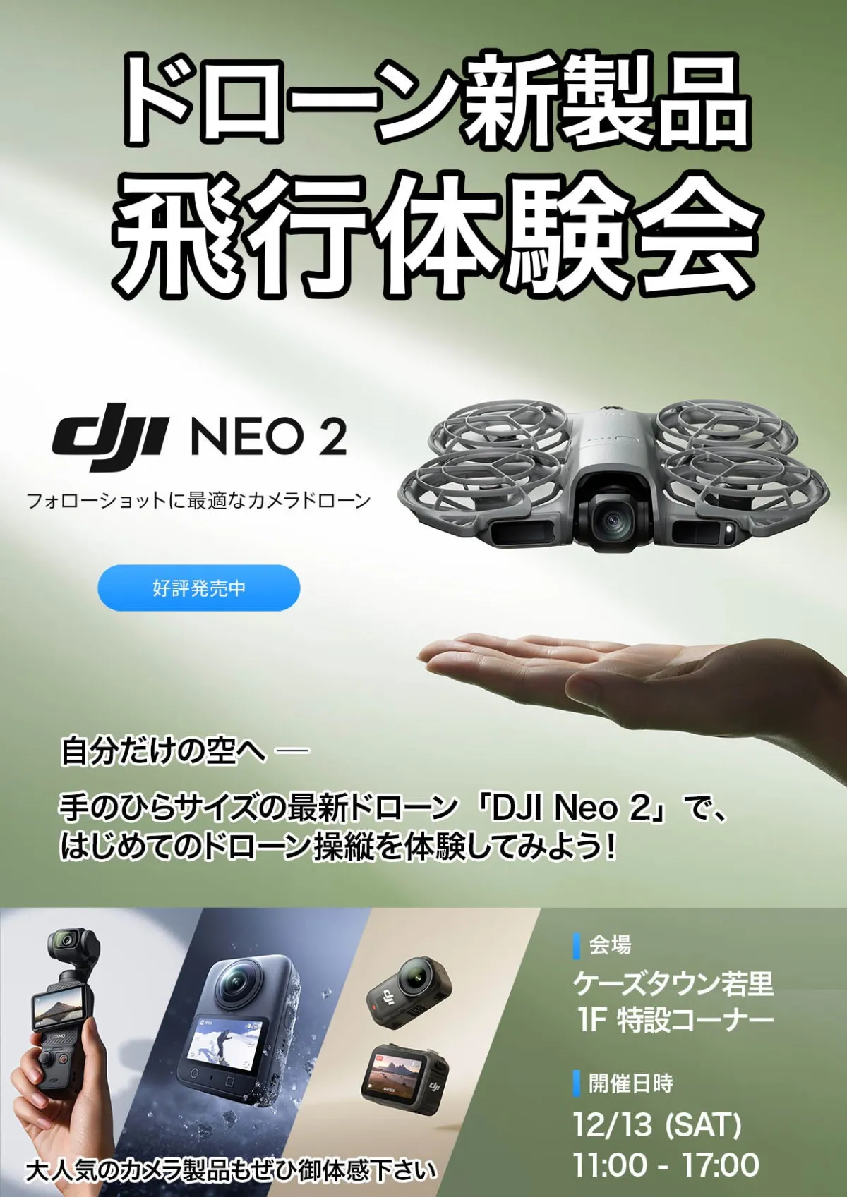 ドローン飛行体験会: 対象機種はDJI Neo 2、DJI Mini 5 Proなど。