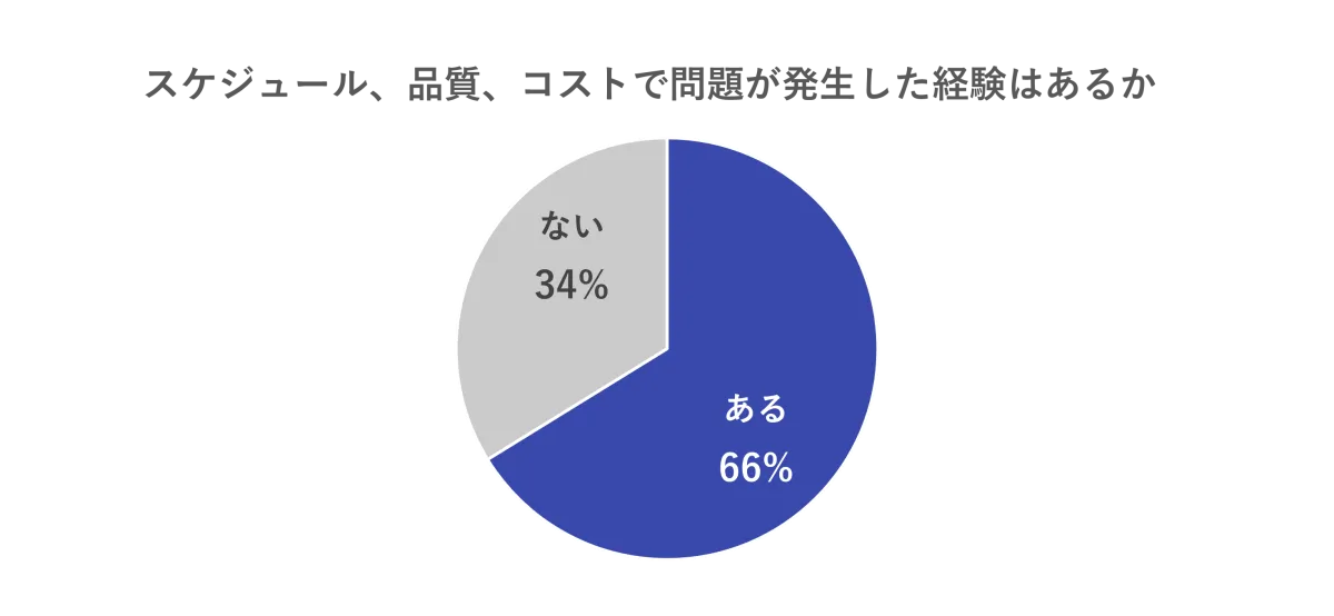 今回、EdWorksが行った調査では、1,003名の情報通信業に従事する技術系人材を対象に、ITプロジェクトにおける失敗要因とその対策について分析しました。調査結果は、プロジェクトが予算や期間内に完遂できない「失敗経験」を持つ人が全体の66%に及ぶことがわかりました。さらに、未然に問題を防ぐためにはエンジニアのコミュニケーション力を高めることが最も重要であると示されています。