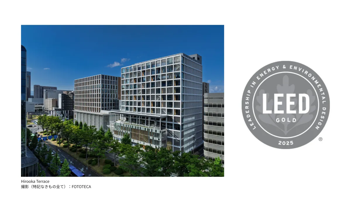 このプロジェクトは、設計監理を株式会社三菱地所設計が担当し、認証取得の支援には株式会社ヴォンエルフが関わっています。こうした背景もあり、「Hirooka Terrace」は地域金融持株会社が運営する初のLEED認証ビルとして注目されています。