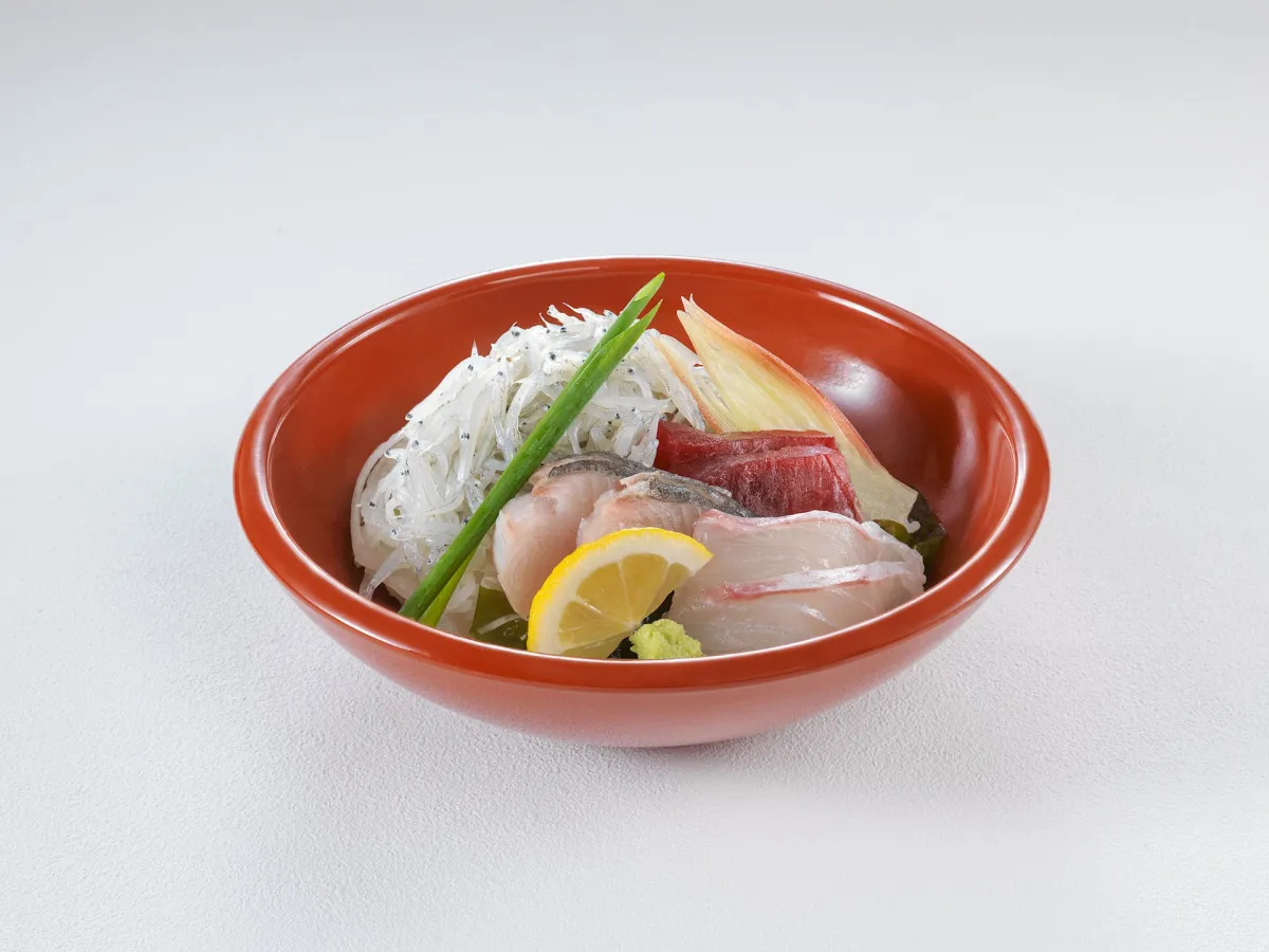 - 淡路島生しらす海鮮丼: ¥3,300(小鉢、丼物、香の物、赤出汁、水菓子付き)