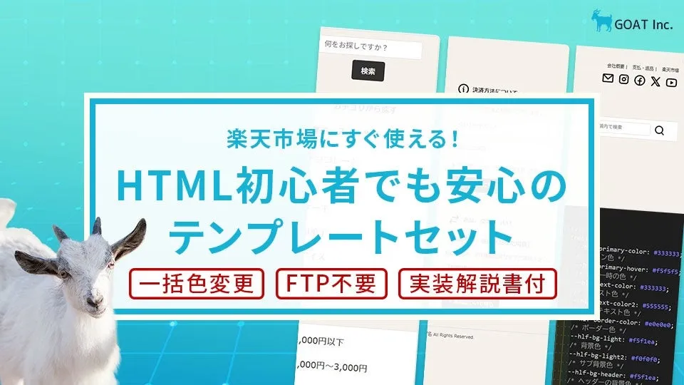 この「楽天市場 店舗構築テンプレートセット」は、株式会社GOATの公式サイトで無料で配布中です。初心者でも手軽にダウンロードでき、審査通過への第一歩を踏み出せます。