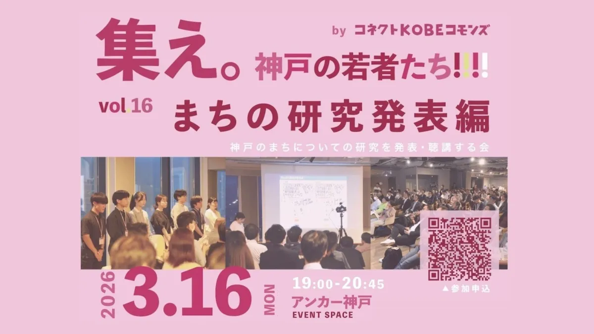 2024年度より実施されるこの発表会は、次世代の学生が地域に貢献する様々な研究を発表する場です。今年の開催は2026年3月16日、神戸市中央区のアンカー神戸で行われます。発表は19時から始まり、大いに交流が期待される懇親会も用意されています。