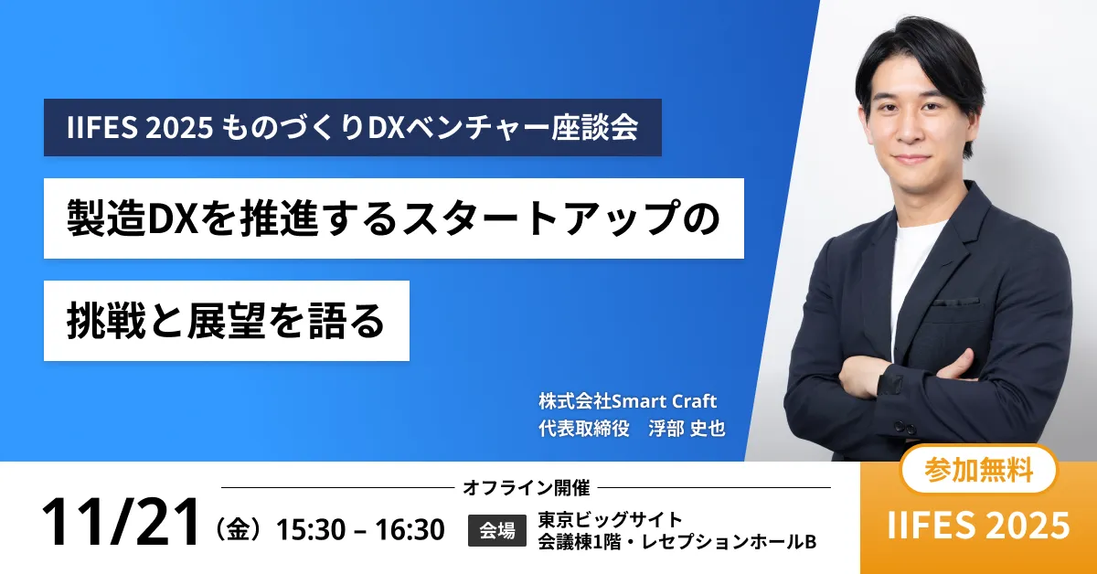 株式会社Smart Craftが、東京ビッグサイトで開催される「IIFES 2025」において、製造業のデジタル変革についての重要なセッションに登壇します。このイベントは、2025年11月19日から11月21日までの三日間にわたり実施され、多くの業界関係者が集まります。特に注目されるのは、製造業のデジタル支援を目指すスタートアップ企業による「ものづくりDXベンチャー座談会」です。