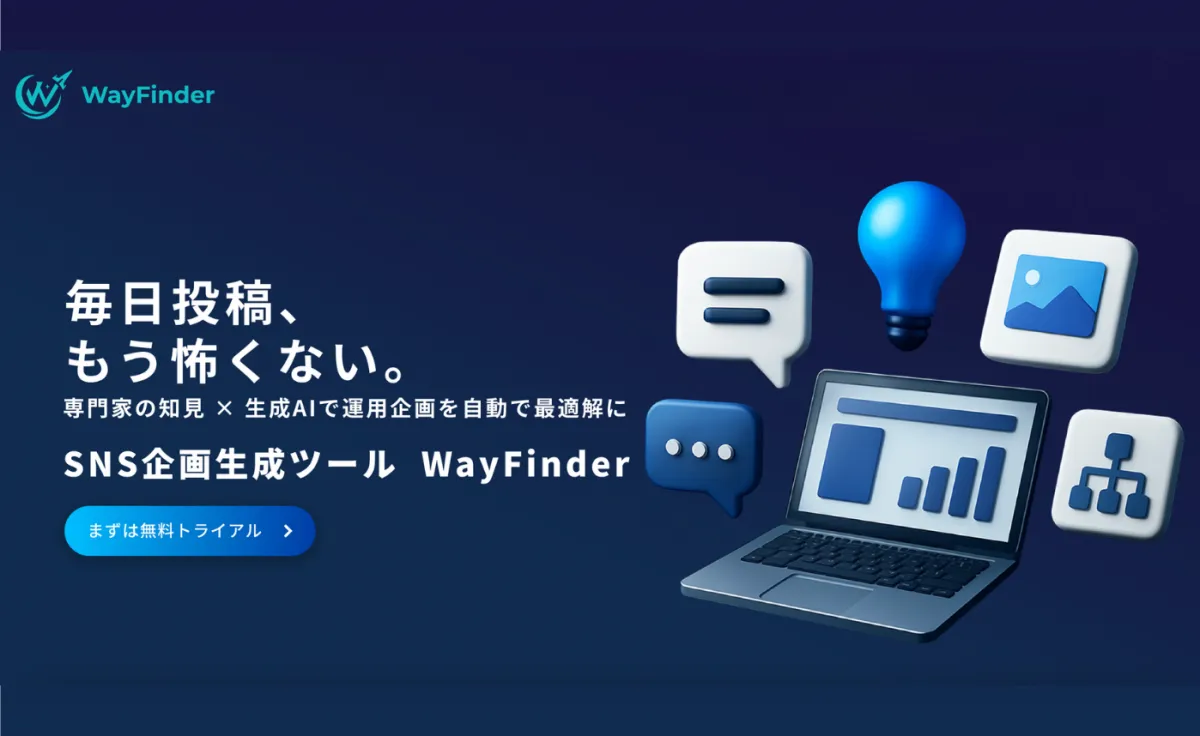 今後は、各アカウントのデータに基づいたパーソナライズされた企画案生成や、データ分析機能の追加が予定されています。WayFinderは、SNS運用の中心として、不可欠な高品質ツールとしての地位を確立していくでしょう。