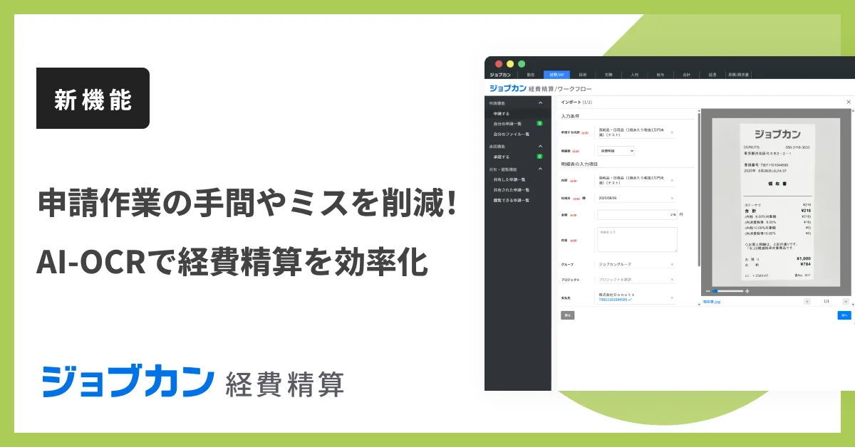 経理業務のデジタル化が急速に進む中、株式会社DONUTSが提供する『ジョブカン経費精算』がさらに進化を遂げました。特に注目したいのは、新たに追加されたAIを活用した「AI-OCR機能」です。この機能により、領収書の自動読み取りが可能となり、経費精算業務の効率化が一層進みます。