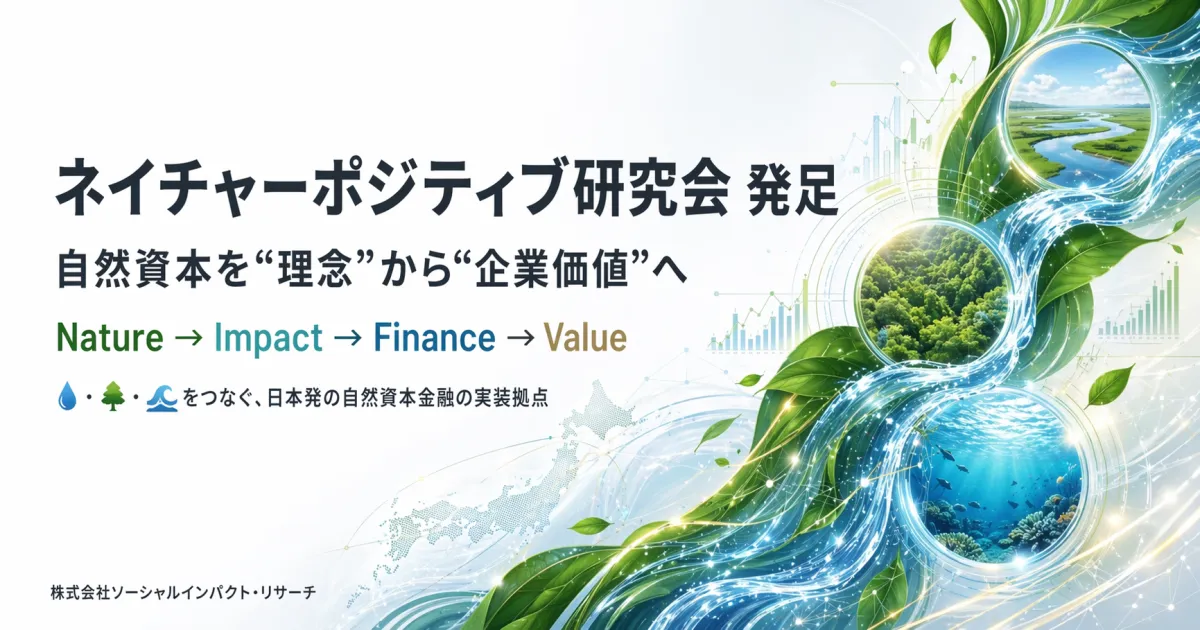 株式会社ソーシャルインパクト・リサーチが、新たに「ネイチャーポジティブ研究会」を設立しました。この研究会は、企業が自然資本への依存や影響を可視化し、財務に基づいた企業価値評価へと結びつけていくことを目的としています。日本国内で、自然資本の理解を深め、企業の実践的な経営戦略に生かすための拠点を築くことを目指しております。