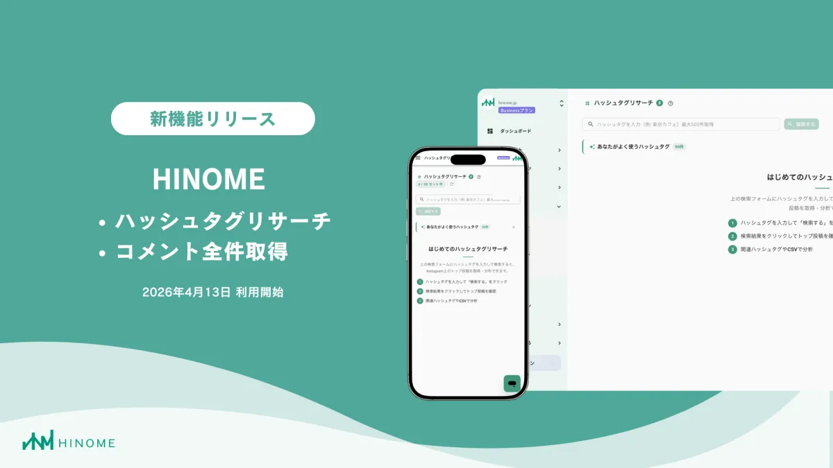 Instagram運用において、効果的な戦略の立案や実行は必要不可欠ですが、それを支えるための労力には疲弊しているSNS担当者も多いでしょう。そんな中、Instagram分析ツール『HINOME』が新たにリリースした2つの強力な機能—「ハッシュタグリサーチ」と「コメント全件管理」—が、企業のSNS戦略を一変させる可能性を秘めています。