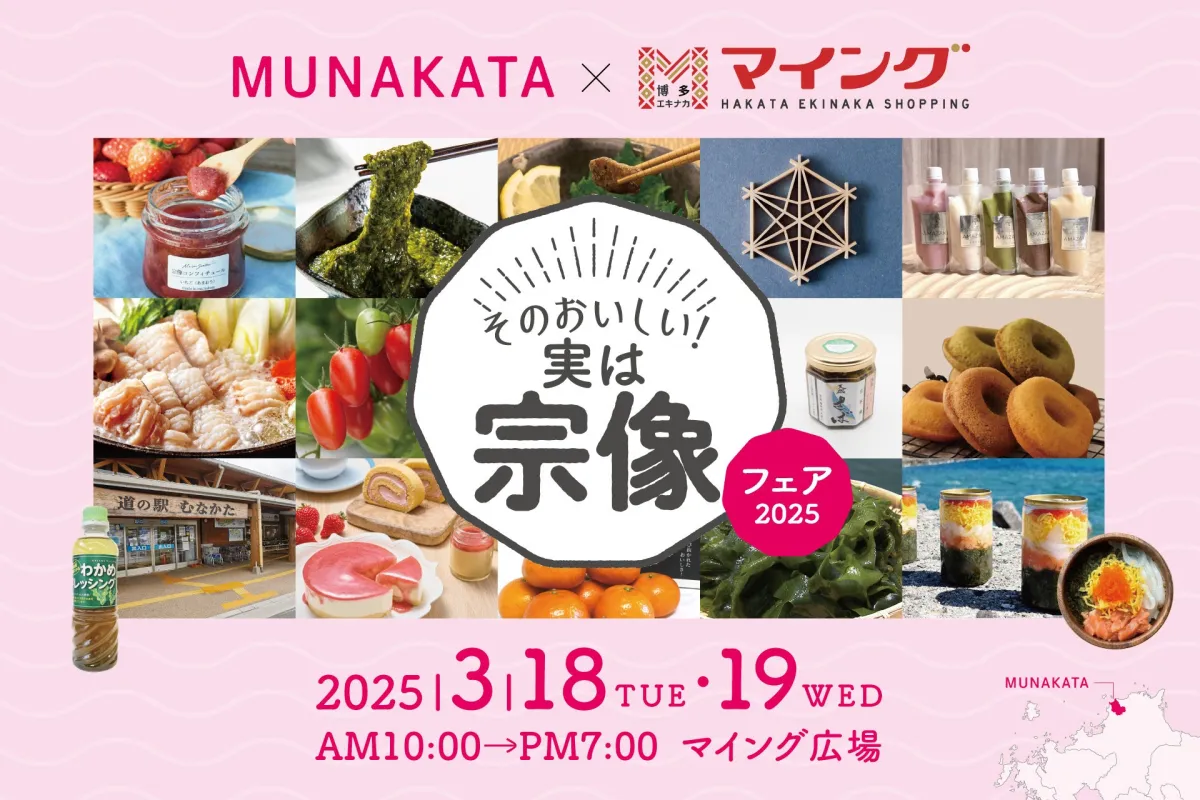 福岡県宗像市の魅力を発見する「そのおいしい!実は宗像」フェアが2025年3月18日(火)と19日(水)の2日間、博多エキナカにある『マイング』で開催されます。このイベントは、宗像市の地域産品の認知度向上を目的としており、訪れる皆さんに宗像の豊かな自然が生み出した美味しい食品の数々を直に体験していただけるかけがえのない機会です。