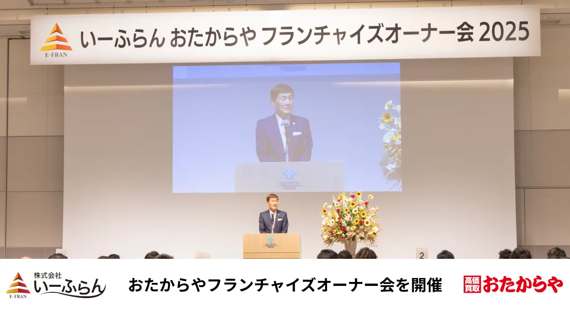 2025年7月10日、横浜のパシフィコアネックスホールで、リユース業界のリーダーとして知られる株式会社いーふらんが、206名のフランチャイズオーナーを招待した「おたからやフランチャイズオーナー会」を開催しました。このオーナー会は6年ぶりの開催であり、参加者たちは久しぶりの再会を喜び、リユース事業における現状や未来について意見を交わしました。