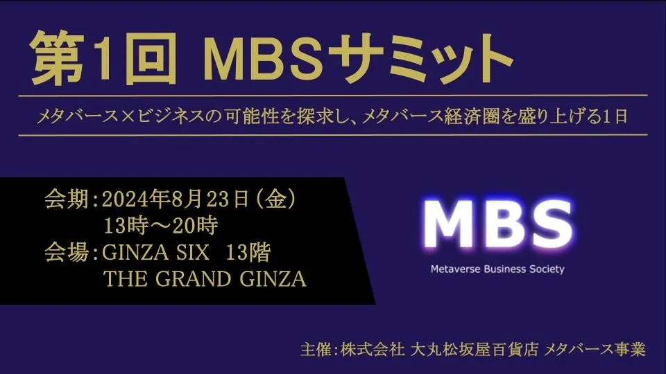 2024年8月23日(金)、東京都中央区のGINZA SIX内の「THE GRAND GINZA」にて、待望の第1回Metaverse Business Society(MBS)サミットが行われます。このサミットは、メタバースのビジネス活用を促進するために設立されたコミュニティの一環として、業界内の企業や団体の担当者が一堂に会し、さまざまなノウハウを共有する貴重な機会となります。