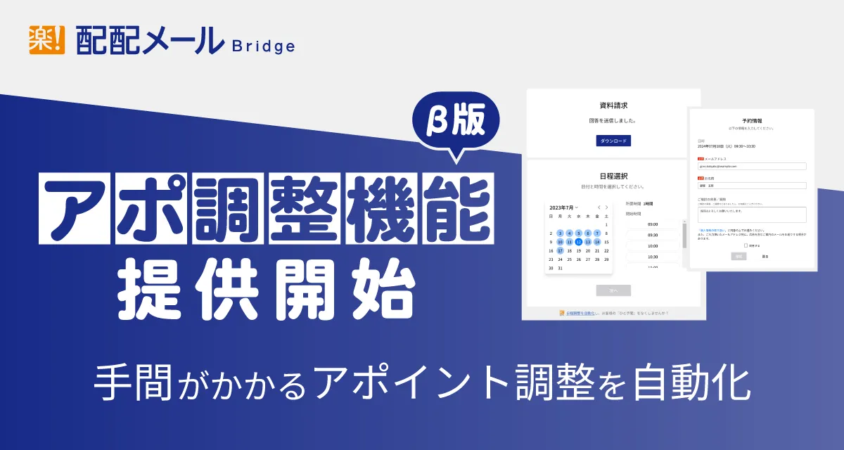 株式会社ラクスが提供する「配配メールBridge」に、新たに商談獲得をサポートする「アポ調整機能」が追加されることが発表されました。この機能は、2025年2月にβ版として利用可能となり、既に「配配メールBridge」を契約している企業には追加の費用が発生しないとのことです。