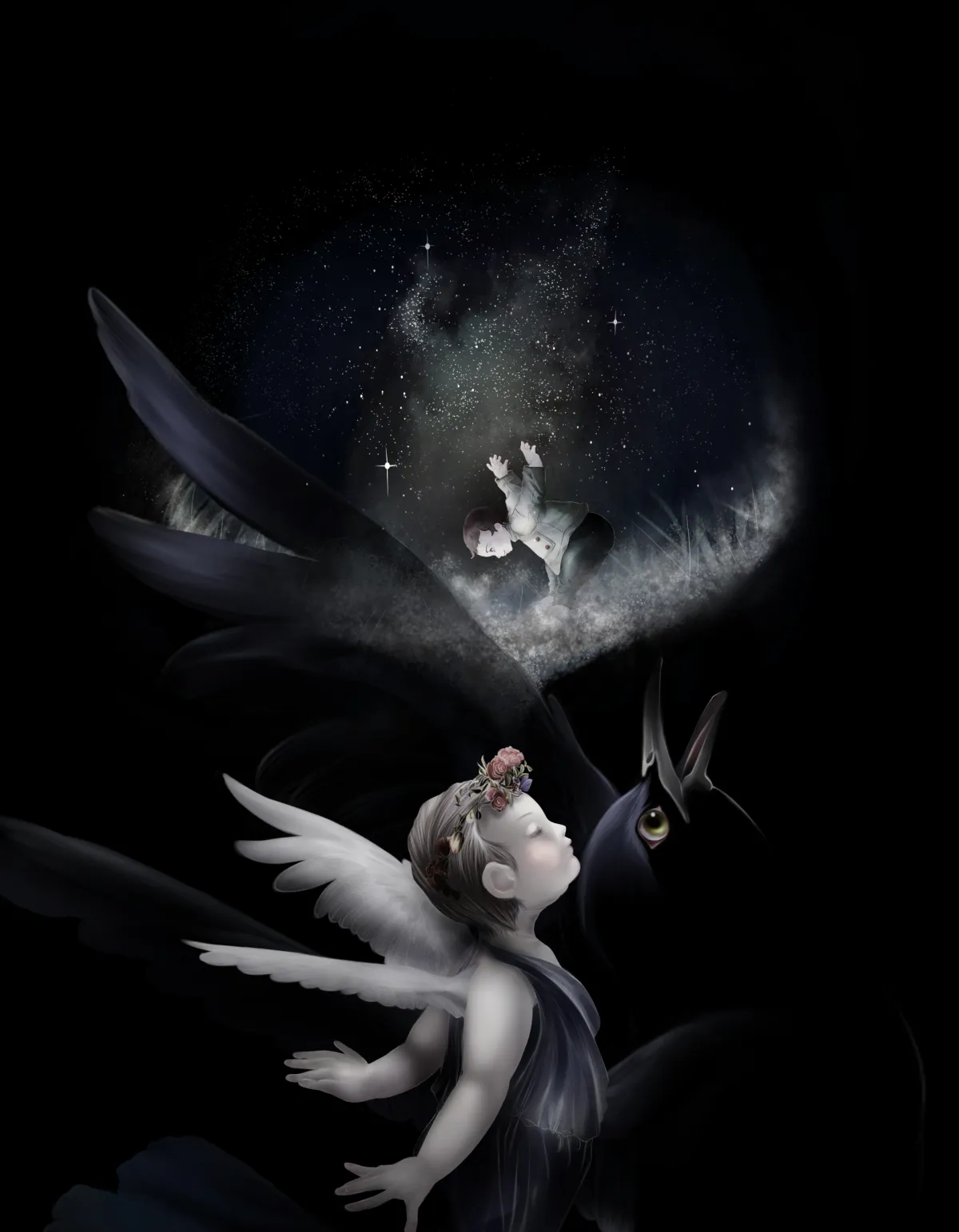 それぞれの作品には、幻想的な風景を描く能力が強調されており、特に黒を基調とした作風が郷崎氏の特徴の一つとなっています。加えて、彼の作品には作家本人の強いメッセージも込められており、過去との決別をテーマにしたものも見られます。