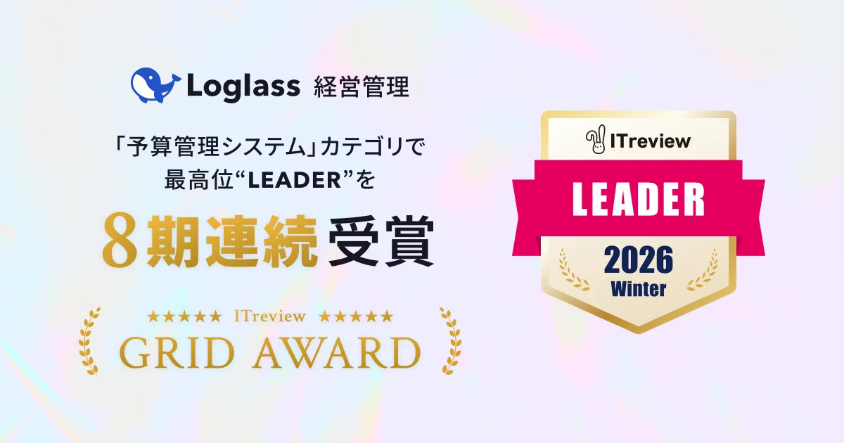 株式会社ログラスが提供するクラウド経営管理システム「Loglass 経営管理」が、B2B向けIT製品のレビュープラットフォーム「ITreview」において、2026年度冬受賞のITreview Grid Awardで「予算管理システム」部門で最高ランクの「Leader」に選ばれました。これにより、Loglassは8期連続での受賞を達成しました。