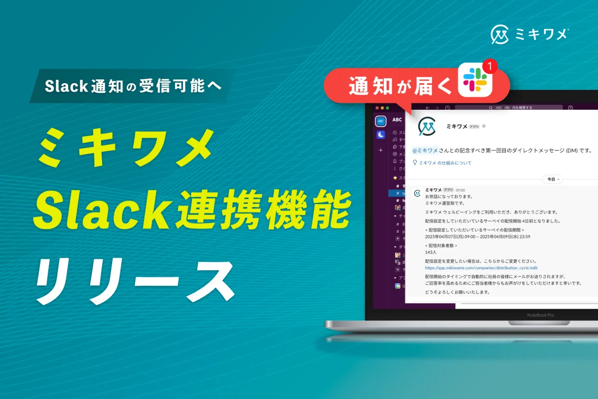 株式会社リーディングマークが提供するクラウド型適性検査『ミキワメ』が、人気のビジネスコミュニケーションツール『Slack』との連携機能をリリースした。この新しい機能により、企業の人事部門は従業員に対して適性検査やウェルビーイングサーベイに関する通知をSlack上で行い、業務の効率化が期待されている。