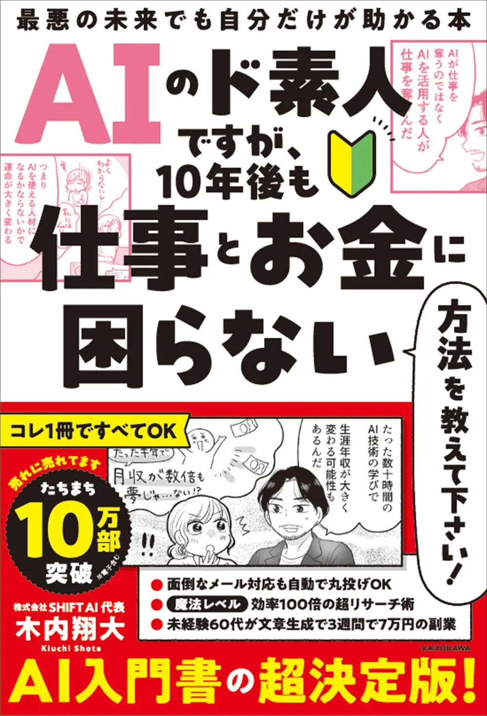著者の木内翔大が手掛けた『AIのド素人ですが、10年後も仕事とお金に困らない方法を教えて下さい!』は、AI技術の進展に不安を抱える人々に寄り添う一冊です。この本は、今、私たちが直面している急速な技術革新の波にの乗り遅れないための「教え」を提供しています。この書籍は、全国の書店やオンラインで購入可能で、電子版も同時に好評を博しています。
