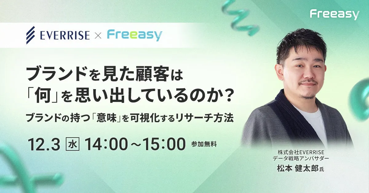 消費者の選択に大きな影響を与える「ブランドの記憶」。そのメカニズムや可視化手法に関するオンラインセミナーが2025年12月3日(水)に開催されます。このセミナーでは、アイブリッジ株式会社とEVERRISEが共催し、参加者にはブランドの意味や消費者に与える印象を深く理解する機会が提供されます。
