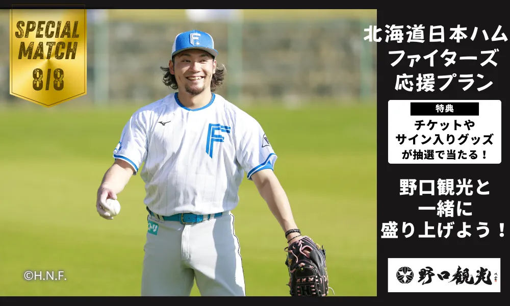 お待たせしました!北海道での公式戦がいよいよ開幕します。これに合わせて、野口観光グループでは特別な宿泊プランが登場しました。このプランでは、宿泊するだけで北海道日本ハムファイターズの観戦チケットや選手のサイン入りグッズが抽選で当たるチャンスを提供しています。