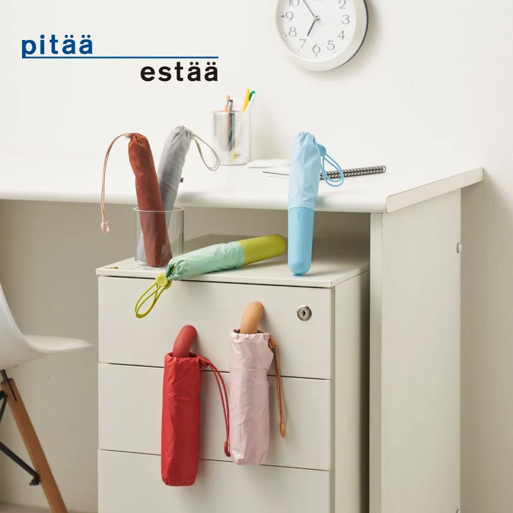 「pitää」というブランド名は、フィンランド語で「保つ」という意味を持ち、日常生活における小さな不便を解消することを目指しています。このブランドは、高い機能性を持ちながらも、スタイリッシュなデザインを採用した全3シリーズを展開しており、使用後に玄関のドアにぴたっと貼り付けられるハンドルや、傘袋を持ち手に収納できる設計、細く持ちやすい形が特徴です。
