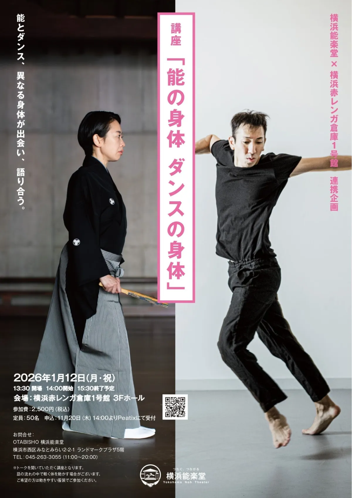 2026年1月12日、横浜にて特別講座「能の身体 ダンスの身体」が開催されます。この講座では、伝統的な能と現代的なコンテンポラリーダンスという、異なる舞台芸術の2つの側面が融合する瞬間に立ち会うことができます。