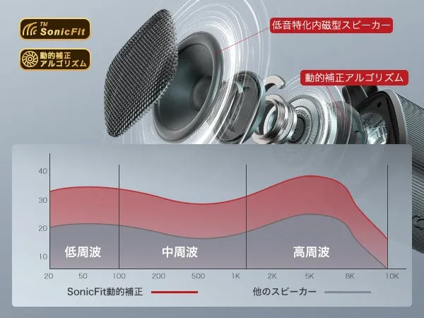 Sora5の最大の魅力は、その音質にあります。重低音強化とクリアな高音を実現するために、独自の低音強化アルゴリズムと高性能DSPチップを使用しています。さらに、「SonicFit」動的補正アルゴリズムにより、あらゆる音量帯で音の忠実な再現が可能です。これにより、日常の音楽体験が格段に向上します。
