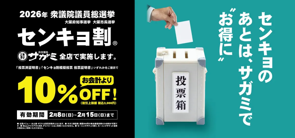 株式会社サガミホールディングスが、2026年2月8日に開催される第51回衆議院議員総選挙に合わせて「センキョ割」キャンペーンを実施します。このキャンペーンでは、投票済証明書または模擬投票投票証明書を提示することで、多数の特典を受けられるチャンスがあります。
