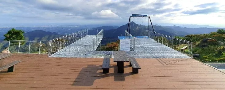 COCORUテラスは、展望テラス、ブランコ(2台)、ウッドデッキの三つの大きな要素から成り立っています。この場所からは、周囲の美しい山々を一望でき、清々しい空気に包まれることができます。自然の風景を背に、思わず心が躍る瞬間をぜひ体感してください。