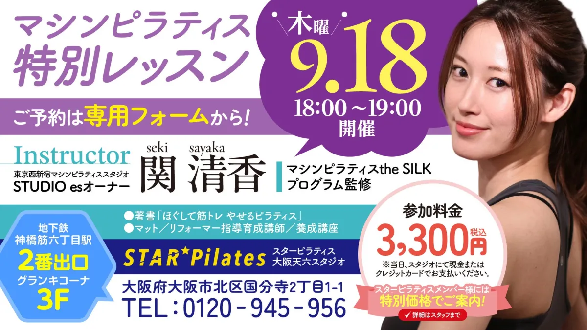 株式会社SDエンターテイメントが運営する「スターピラティス」は、2025年9月18日(木)に大阪天六スタジオにて特別レッスンを実施します。今回のレッスンは、譜久村の人気インストラクター、関清香氏を迎え、1日限定の特別企画です。このような試みは初めてのことで、ピラティス初心者も安心して参加できる内容となっています。