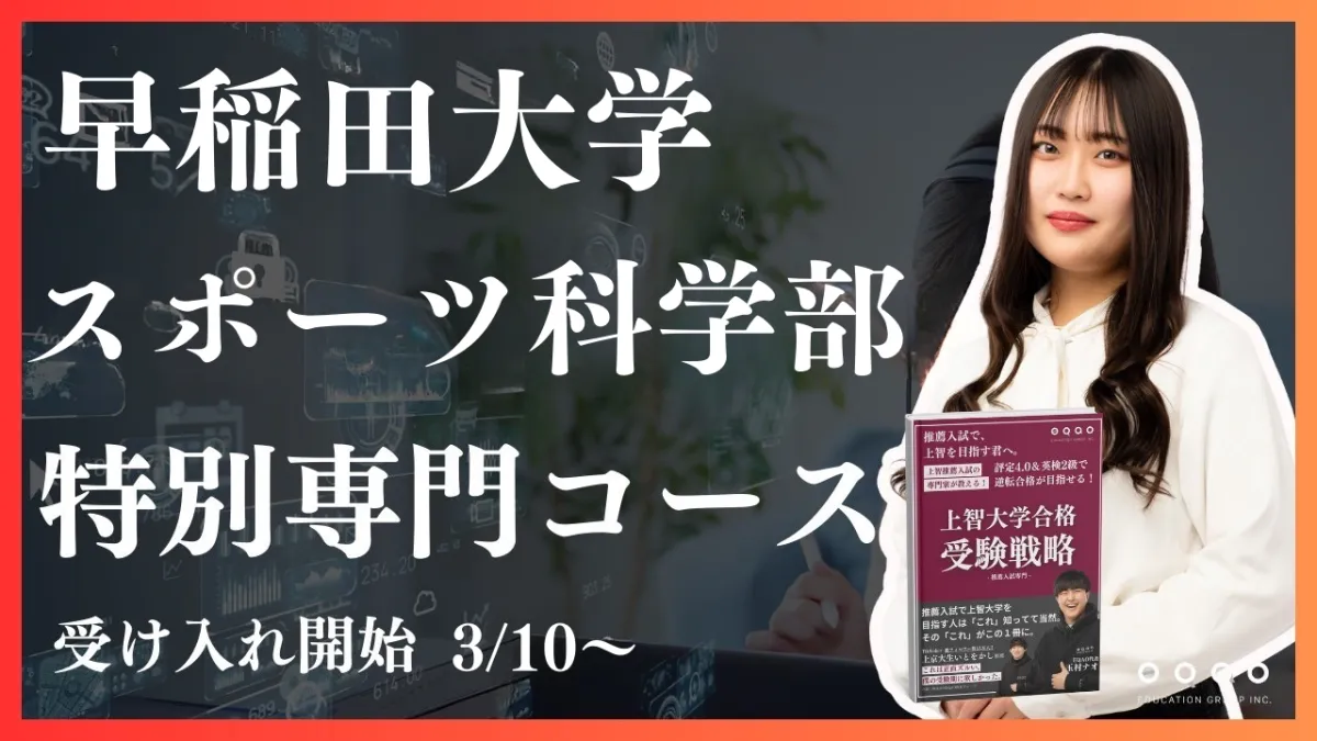 早稲田大学スポーツ科学部の推薦入試に興味がある高校生の皆さんへ、特別な情報をお届けします!総合型選抜に特化した専門塾EQAOが、早稲田大学スポーツ科学部専門コースを開講することになりました。3月10日からの受付が始まります!