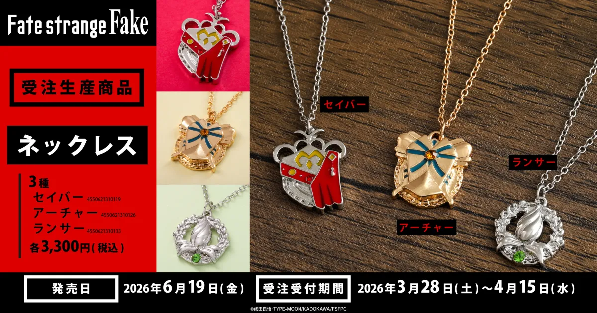 このネックレスの受注期間は2026年3月28日から4月15日までです。この機会をお見逃しなく、全国のアニメイトやアニメイト通販、ムービック通信販売などで予約を受け付けています。購入を希望される方は、早めのご予約をお勧めします!