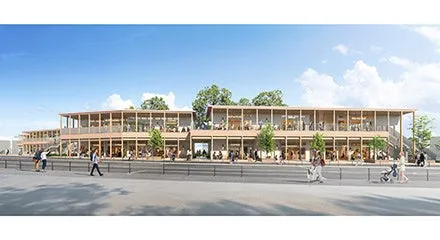 商業施設は、木材を最大限に利用し、居心地の良い空間を提供することが計画されています。特に、外装に見える木構造は、訪れる人々に自然の温かみを感じさせるでしょう。