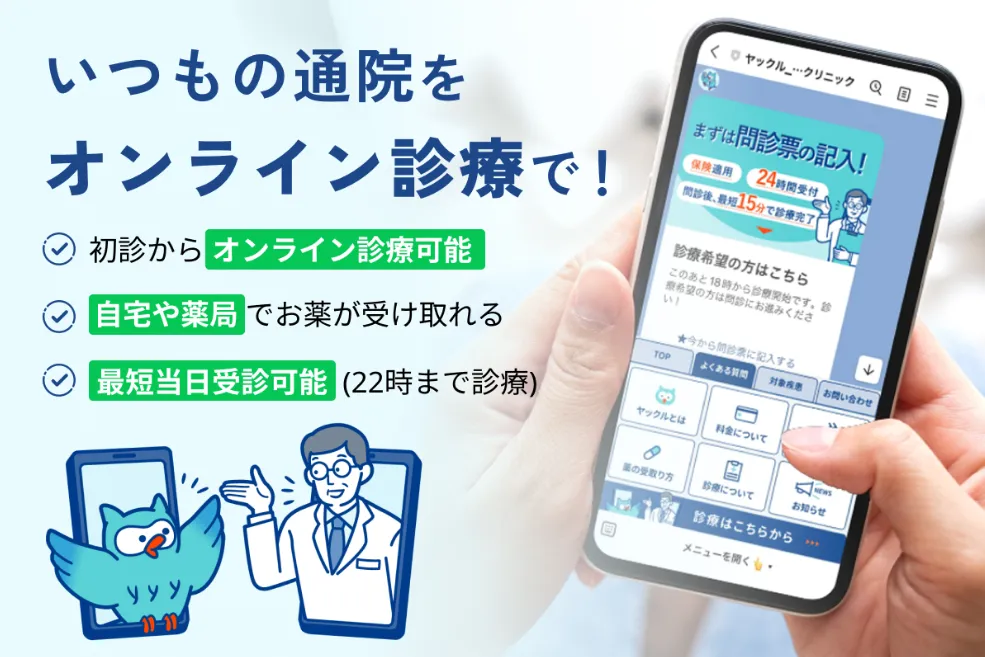 「オンライン保険診療ヤックル」は、様々な生活習慣病に特化し、スマホやLINEを用いて自宅から受診可能です。年中無休で提供される夜間診療が特徴で、特に忙しいビジネスパーソンにとって「夜間のかかりつけ医」として利用されています。診療後には院内処方による「ワンストップ処方」が利用でき、処方された薬を自宅に届けてもらうことも可能です。