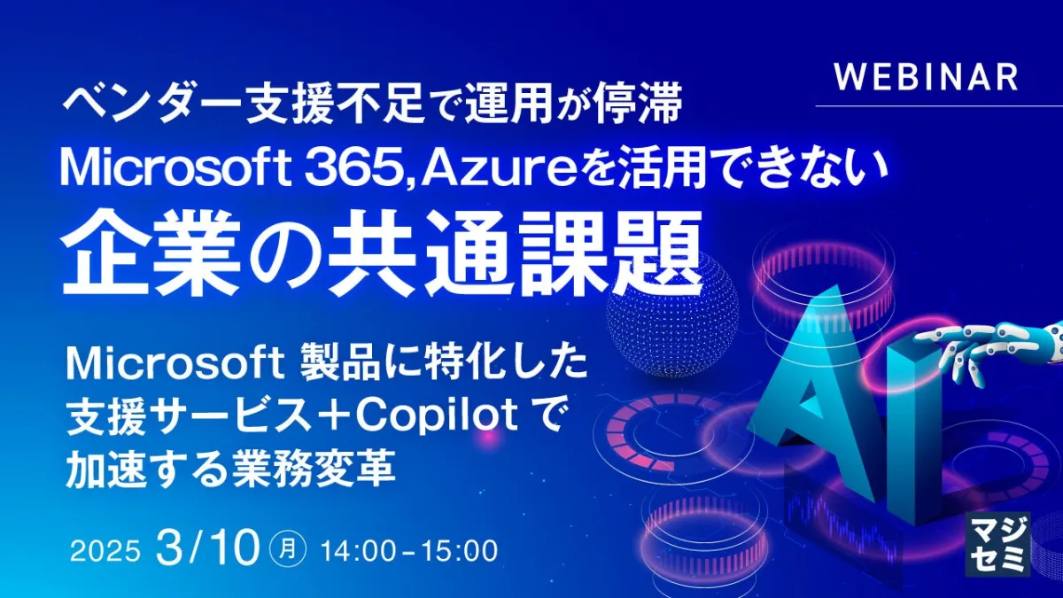 最近、デジタルトランスフォーメーション(DX)や業務効率化の目的で多くの企業がMicrosoft 365やAzureを導入するようになりました。しかし、クラウドサービスの利用が進む一方で、実際にその効果を十分に引き出せていない企業も多いようです。それらの企業が抱える共通の課題や、その解決策を探るウェビナーが開催されます。
